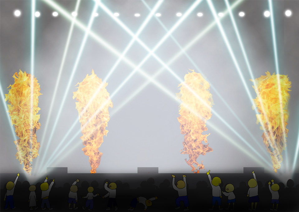 信号で制御し、音やタイミングに合わせて着火することが可能です。